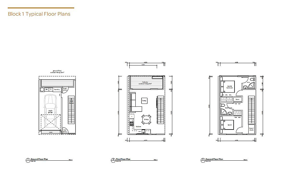 The remaining two townhouses are positioned for privacy at the rear and feature two bedrooms, one bathroom and an off-street parking space.